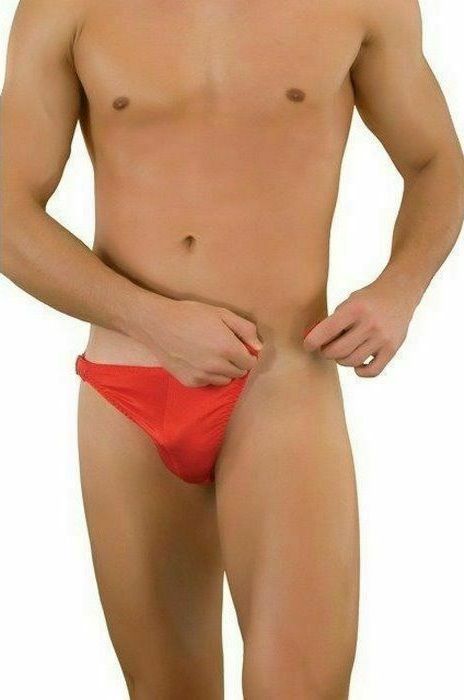 Мужские красные трусы-тонги на застежке.
