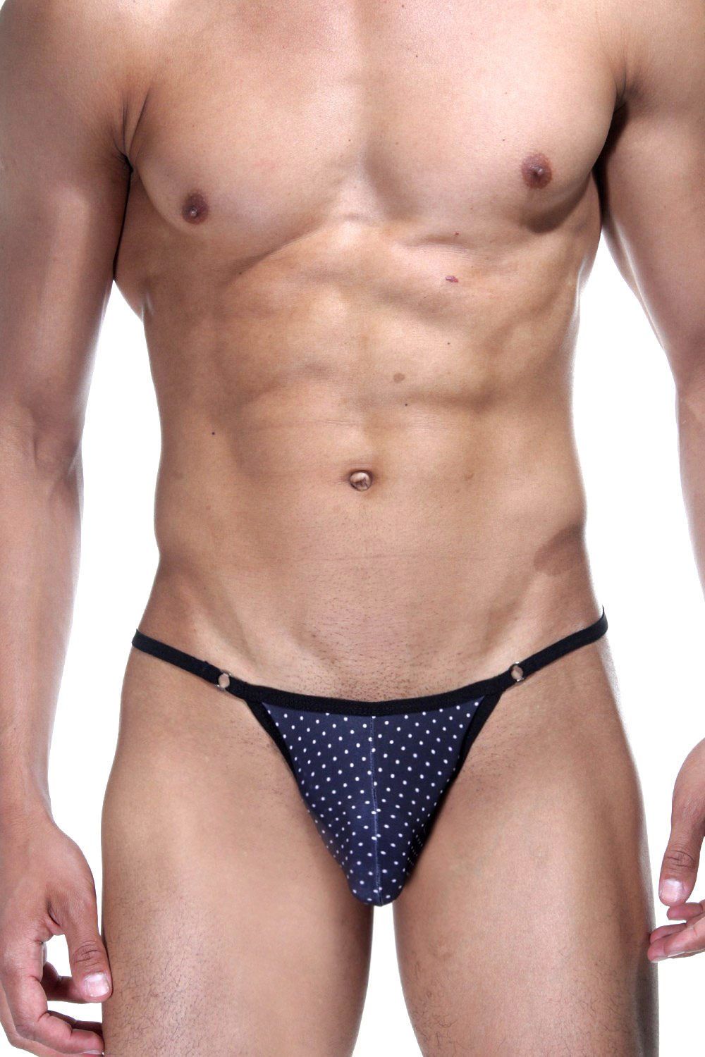 Темно-синие трусы-стринги в горошек.