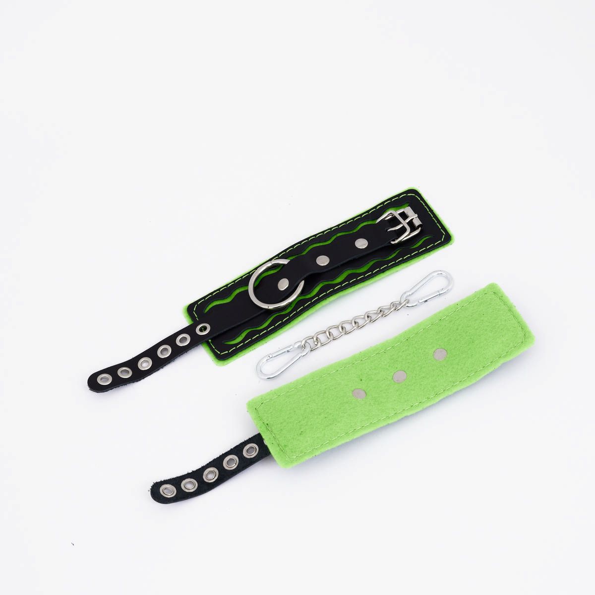 Представляем вам наручники с авторским дизайном , которые станут настоящим украшением вашей коллекции аксессуаров для особых моментов. Эти наручники — это смелое сочетание стиля, комфорта и игривости, созданное для тех, кто не боится выделяться. Изделие выполнено из 100% натуральной кожи , которая мягко облегает, обеспечивая комфорт даже при длительном использовании. В центре внимания — стальное хромированное кольцо из нержавеющей стали , которое добавляет конструкции прочности и элегантности. А мягкая подкладка кислотно-салатового цвета с контрастной строчкой делает эти наручники по-настоящему запоминающимися и дерзкими. Резные элементы дизайна добавляют изделию особую нежность и утонченность, подчеркивая красоту вашего тела. Регулируемый ремешок из натуральной кожи позволяет идеально подогнать размер под любой обхват запястья (от 19 до 27 см), гарантируя как удобство, так и безопасность использования. В комплект входит прочная соединительная цепочка с двумя надежными карабинами , которые обеспечивают стабильность и контроль. Общая длина изделия составляет 28 см , а каждая манжета имеет размеры 18,5 х 7 см , что делает их универсальными и подходящими для любого типа использования. Упаковка? Она тоже часть удовольствия! Наручники доставляются в фирменной упаковке с брендированной деревянной подложкой, которая не только защищает изделие, но и делает его идеальным подарком для особого человека… или для себя любимого(-ой). Длина манжеты - 18,5 см, ширина - 7 см.