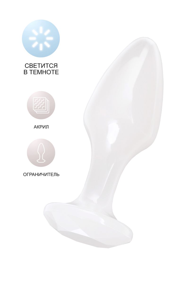 Анальная втулка классической формы выполнена из акрила. Прозрачно-белого цвета при дневном свете и светящаяся в темноте. Ограничительное основание обеспечивает безопасность при использовании, поэтому втулку высоко ценят не только опытные любители анального секса, но и новички. Рабочая длина - 8 см.