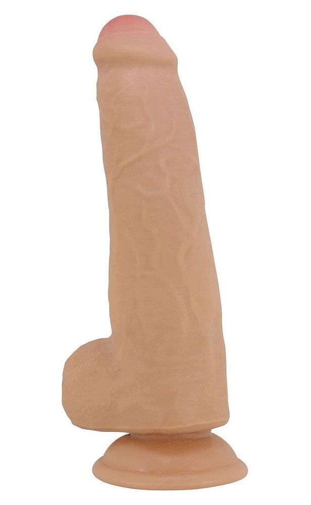 Фаллоимитатор с мошонкой на присоске из двухслойного материала. Двойной слой кожи позволяет имитировать скольжение кожи на фаллоимитаторе. Рабочая длина - 15,5 см.