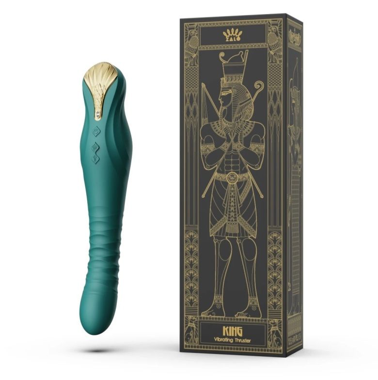 Дизайн King вдохновлен золотой маской древнеегипетского царя, символизирующей завоевания, силу и непреодолимую магию. Дизайн золотого украшения в верхней части несет в себе мистический антураж с использованием символов: орла и кобры. Мы объединяем эти два элемента, перья орла и чешую кобры, в форму лотоса, который не только имеет красивый внешний вид, но и несет в себе всю долгую и насыщенную историю Древнего Египта. King применяет передовую технологию PowerThrust, органично интегрируя высокопроизводительные системы моторчиков и инновационные конструкции электроприводов, преодолевая ограничения традиционных аналогов и поднимая тяговую мощность моторчиков на новый, недосягаемый уровень, что доставит вам более мощный оргазм. Вибратор осуществляет мощные толчки до 1,5 см длиной. Особенности: -Безопасный для тела силикон премиум-класса -Украшен настоящим кристаллом SWAROVSKI -4 режима вибрации 8 режимов мощности -Класс водонепроницаемости: IPX4 - защита от брызг воды -Управление через приложение ZALO REMOTE. Рабочая длина - 15,2 см. Время зарядки - 2 часа. Время работы - до 3 часов.